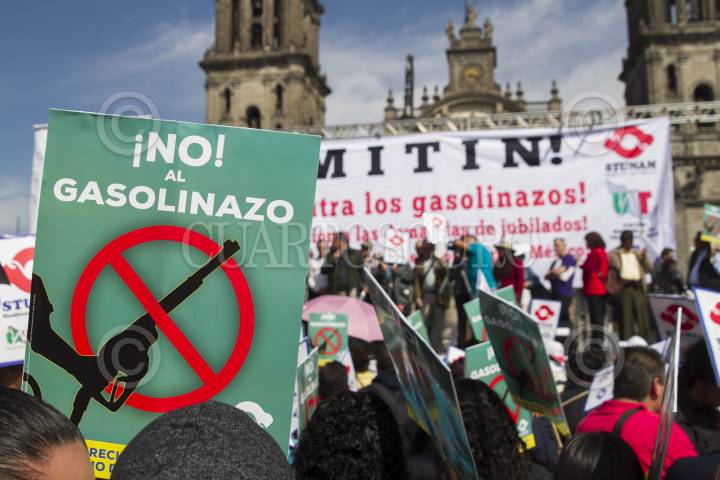 CIUDAD DE MÉXICO, 19ENERO2017.- Integrantes del Sindicato de Trabajadores de la Universidad Autónoma de México (STUNAM) se manifestaron en contra del gasolinazo en la expladana del Zócalo. En la imagen Agustín Rodríguez, líder del STUNAM. FOTO: MOISÉS PABLO /CUARTOSCURO.COM