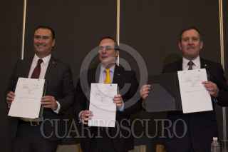 CIUDAD DE MÉXICO, 19ENERO2017.- Enrique Solana Sentíes, presidente de la CONCANACO/SERVYTUR, durante la firma del pacto para la protección y el fomento al consumo de los productos nacionales. Esto con motivo de la política proteccionista que el presidente electo de los Estados Unidos, Donald Trump, ha anunciado desde meses pasados. Trump asumirá el cargo el día de mañana. FOTO: GALO CAÑAS /CUARTOSCURO.COM
