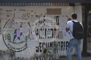 MONTERREY, NUEVO LEÓN, 19ENERO2017.- Las clases en el Colegio Americano del Noreste son suspendidas durante dos días, debido a los acontecimientos violentos el día de ayer. Padres de familia siguen dejando ofrendas en las afueras del lugar. FOTO: GABRIELA PÉREZ MONTIEL /CUARTOSCURO.COM