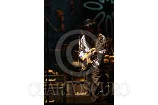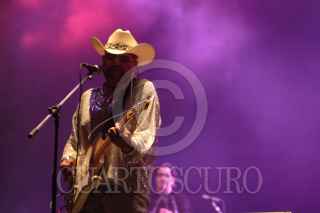 José Manuel Aguilera, vocalista de la Barranca, se aventó un palomazo con el Tex Tex, durante su presentaciónen el Zócalo capitalino. FOTO: Nelly Salas/CUARTOSCURO.COM
