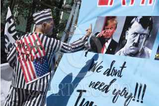 CIUDAD DE MÉXICO, 20ENERO2017.- Manifestantes se reunieron en la Embajada de los Estados Unidos de América para protestar en contra del nuevo presidente Donald Trump. FOTO: TERCERO DÍAZ /CUARTOSCURO.COM