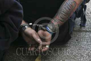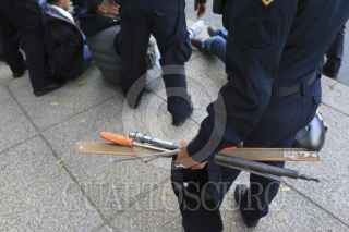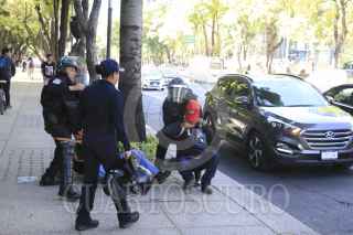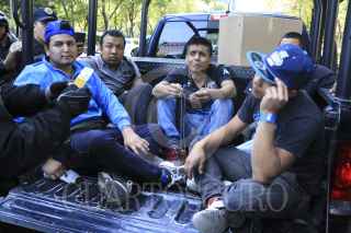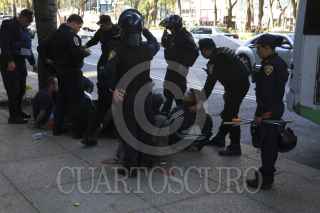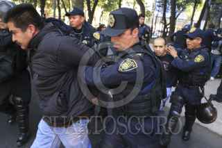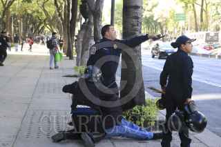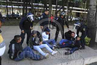 CIUDAD DE MÉXICO, 20ENERO2017.- Elementos de la Secretaria de Seguridad Pública de la Ciudad de México detuvieron a un grupo de hombres que portaban palos tubos y objetos punzocortantes. Los policías detuvieron su paso de dichas personas después de que rompieran un cristal del Turibús. Los detenidos fueron remitidos al Ministerio Público de la delegación Cuahutemoc para verificar su estado jurídico. FOTO: SAÚL LÓPEZ /CUARTOSCURO.COM