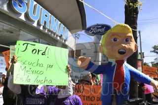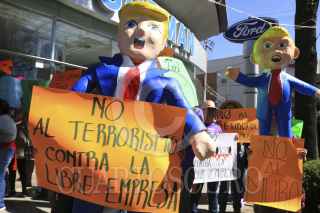 CIUDAD DE MÉXICO, 20ENERO2017.- Integrantes de organizaciones sociales y del partido Encuentro Social, se manifestraon frente a las instalaciones de la agencia de Ford en la colonia Doctores para mostrar su rechazo de la llegada de Donald Trump, como presidente de los Estados Unidos. FOTO: SAÚL LÓPEZ /CUARTOSCURO.COM