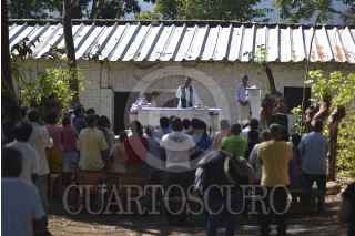 JALCOMULCO, VERACRUZ, 20ENERO2016.- A tres años de que pobladores instalarán en la localidad "Tamarindos" un campamento de resistencia en contra de la construcción de una presa en el río "Pescados" proyecto de la empresa transnacional Odebrecht, hoy celebraron su tercer aniversario donde habitantes y sociedad se unieron para realizar su asamblea para continuar con la defensa del río. FOTO ALBERTO ROA /CUARTOSCURO.COM