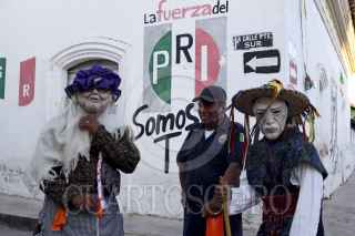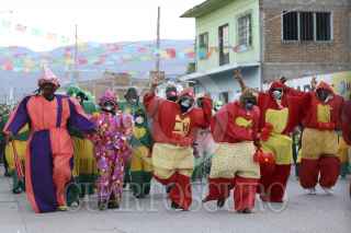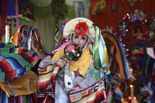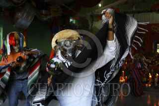 SUCHIAPA, CHIAPAS, 21ENERO2017.- La viejada (hombres y niños disfrazados de mujeres), parachicos, "toritos" y "los panzudos" (personas disfrazadas de personajes de la farándula y de la vida social) danzan en las principales calles de la ciudad y realizan el recorrido en honor a San Sebastián Mártir. FOTO: JESUS GARCIA /CUARTOSCURO.COM