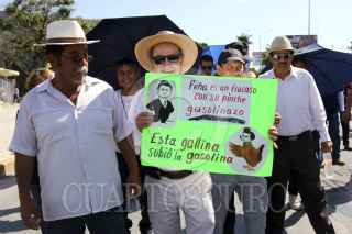 TUXTLA GUTIÉRREZ, CHIAPAS, 21ENERO2017.- Maestros integrantes de la Coordinadora Nacional de Trabajadores de la Educacion (CNTE) y sociedad en general, marcharon sobre la principal avenida de la capital chiapaneca para manifestarse contra el alza al precio de la gasolina. FOTO: JESÚS GARCÍA /CUARTOSCURO.COM