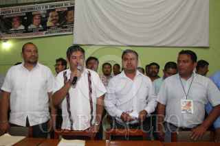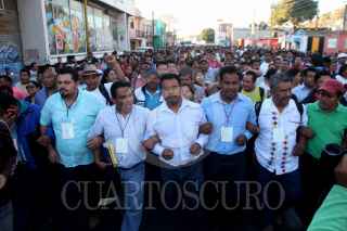 OAXACA, OAXACA, 21ENERO2017.- La asamblea estatal de la sección 22 de la Coordinadora Nacional de los Trabajadores de la Educación (CNTE) eligieron este sábado a la nueva dirigencia de la gremial para el periodo 2017 - 2020. El nuevo secretario general es Eloy López quien proviene del nivel de educación indígena y es representante de la región de la Mixteca, como secretario de Organización fue electo el secretario de Organización, Genaro Martínez. Tras el nombramiento el cual fue avalado por los integrantes del Sindicato Nacional de los Trabajadores de la Educación (SNTE) realizaron una marcha la cual culminó en el zócalo de la ciudad. FOTO: ARTURO PÉREZ ALFONSO / CUARTOSCURO.COM