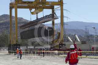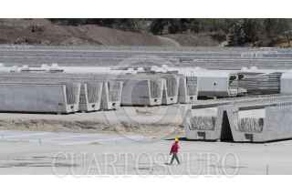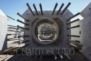 TEXCOCO, ESTADO DE MÉXICO, 22ENERO2017.- En la Planta de Prefabricados PRET se construyendo los elementos prefabricados para la tercera etapa del Tren Interurbano México-Toluca, que cuenta con 17 kilómetros de longitud de Santa Fe a la terminal de Observatorio. Los elementos que se construyen en esta planta son Columnas, Trabes y Capiteles y llevan un 74 por ciento de las piezas, actualmente trabajan con 600 personas y cuentan con dos fábricas de concreto con una capacidad de producción de 150 metros cúbicos por hora, así lo informó la Secretaría de Obras y Servicios, quien esta al resguardo de la obra civil. FOTO: MOISÉS PABLO /CUARTOSCURO.COM