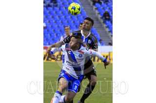 PUEBLA, PUEBLA, 22ENERO2017.- El jugador Jerónimo Amione, disputa el balón con Nery Domínguez en el juego entre el Club Puebla y los Gallos Blancos de Querétaro correspondiente a la jornada 3 del Torneo de Clausura de la Liga MX celebrado en el estadio Cuauhtémoc. FOTO: HILDA RÍOS / CUARTOSCURO.COM