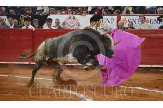 CIUDAD DE MÉXICO, 22ENERO2017.- El matador mexicano Juan Pablo Sánchez lidia a su primer toro de la tarde "Venadito", en la undécima corrida de la temporada grande de la Monumental Plaza México. FOTO: GABINO ACEVEDO /CUARTOSCURO.COM