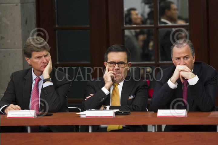 CIUDAD DE MÉXICO, 23ENERO2017.- Graco Ramírez, gobernador de Morelos y presidente de la Conago; Luis Videgaray, secretario de Hacienda, y Enrique Peña Nieto, Presidente de México, durante el anunció del posicionamiento en materia de política exterior, en la residencia oficial de Los Pinos. FOTO: MOISÉS PABLO /CUARTOSCURO.COM