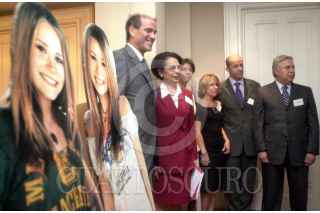 Fue presentada la linea de ropa y accesorios "The Mary-Kate and Ashley brand" que será puesta a la venta en tiendas "Suburbia". En la imagen Robert Thorne, María Elena Sánchez, Celia Hadewyn, Judy Swartz, Andrés Ehrli y Alejandro Bustos, posan para la foto junto a la imagen de las actrices adolecentes Mary Kate y Ashley, populares en Estados Unidos. FOTO: Juan Pablo Zamora/CUARTOSCURO.COM