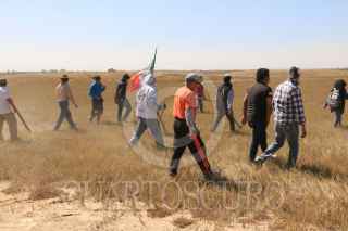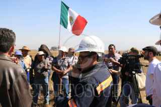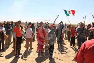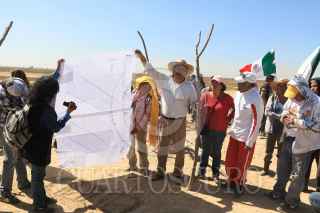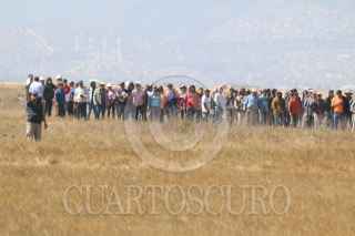SAN SALVADOR ATENCO, ESTADO DE MÉXICO, 23ENERO2017.- Campesinos e integrantes del Frente de Pueblos en Defensa de la Tierra acudieron a los parajes Xalapango y El Paraíso para exigir una audiencia con los encargados que construyen el Nuevo Aeropuerto Internacional de la Ciudad de México para exigirles que no continúen con dicho trazo de la obra ya que han invadido parcelas de campesinos que se encuentran amparados por parte del juzgado de distrito. En el lugar donde pretenden levantar la barda varios grupos de hombres armados con palos esperaban la llegada de los campesinos para increparlos. Después de varias horas de espera una comisión de ingenieros y abogados del NAICM sostuvieron una reunión con los campesinos pero no se llego a ningun acuerdo. FOTO: SAÚL LÓPEZ /CUARTOSCURO.COM
