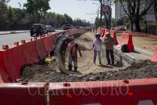 CIUDAD DE MÉXICO, 24ENERO2017.- Continúan los trabajos de medición y excavación sobre Paseo de la Reforma y Eje 2 Norte (Manuel González) de lo que será la Línea 7 del Metrobús. Dicha ruta correrá desde Indios Verdes hasta Santa Fe, contará con 32 estaciones, 15 kilometros de longitud y dará servicio a 110 mil personas diariamente, según lo dicho por la Secretaría de Obras y Servicios. FOTO: GALO CAÑAS /CUARTOSCURO.COM