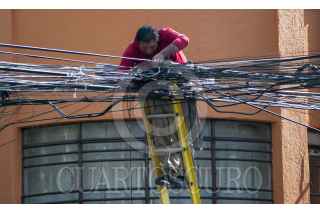 CIUDAD DE MÉXICO, 24ENERO2017.- Un empleado de una empresa de telecomunicaciones realiza trabajos de cableado en la zona de la colonia Condesa. FOTO: DIEGO SIMÓN SÁNCHEZ /CUARTOSCURO.COM