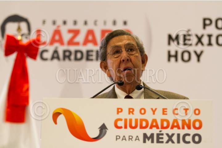 CIUDAD DE MÉXICO, 25ENERO2017.- Cuauhtémoc Cárdenas, coordinador general de Asuntos Internacionales de la Ciudad de México, participó en la presentación "Proyecto Ciudadano para México". El Ingeniero llamó al Jefe de Ejecutivo a no acudir a la reunión con el presidente estadounidense Donald Trump. FOTO: MOISÉS PABLO /CUARTOSCURO.COM