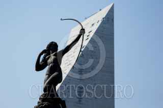 CIUDAD DE MÉXICO, 26ENERO2017.- Aspecto de la estatua de la Diana Cazadora, ubicada sobre Paseo de la Reforma, con la Torre Reforma al fondo. FOTO: GALO CAÑAS /CUARTOSCURO.COM