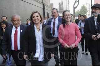 CIUDAD DE MÉXICO, 26ENERO2017.- Pablo Moctezuma Barragán, jefe delegacional en Azcapotzalco; Xóchitl Gálvez, jefa delegacional en Miguel Hidalgo; Rigoberto Salgado, jefe delegacional en Tláhuac; Claudia Sheinbaum, jefa delegacional en Tlalpan, y Avelino Méndez, jefe delegacional en Xochimilco, acudieron a la Suprema Corte de Justicia de la Nación (SCJN) para presentar una acción de inconstitucionalidad al Presupuesto de Egresos 2017 aprobado por la Asamblea Legislativa (ALDF). FOTO: DIEGO SIMÓN SÁNCHEZ /CUARTOSCURO.COM