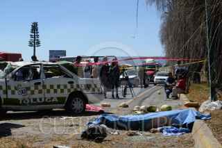 SAN ANTONIO LA ISLA, ESTADO DE MÉXICO, 26ENERO2017.- Un muerto y tres personas lesionadas fue el saldo de una volcadura de un taxi colectivo en la carretera Tenango-Toluca, a la altura del kilómetro 16. El chófer de la unidad quedo sin vida en la carretera. FOTO: ARTEMIO GUERRA BAZ /CUARTOSCURO.COM