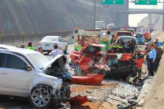 CUAUTITLÁN IZCALLI, ESTADO DE MÉXICO, 26ENERO2017.- Un fuerte choque entre un automóvil de color rojo y una camioneta blanca dejó como saldo dos muertos y tres lesionados, los hechos se registraron en la autopista Chamapa-Lechería, a la altura del kilómetro1.5. En la camioneta de color blanco viajaba la diputada federal por el Distrito 10 Virginia Nallely Gutiérrez Ramírez. FOTO: ARMANDO MONROY /CUARTOSCURO.COM