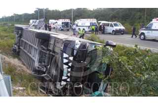 PUERTO MORELOS, QUINTANA ROO, 27ENERO2017.- Accidente de un autobús turístico de la empresa Xcaret. Se registró un total de 20 heridos. FOTO: POLICIA MUNICIPAL/ ELIZABETH RUÍZ /CUARTOSCURO.COM