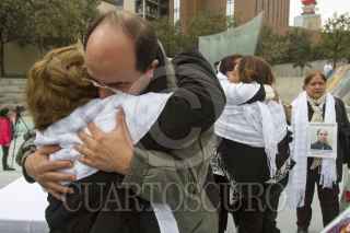 MONTERREY, NUEVO LEÓN, 27ENERO2017.-El ex Presidente de la Comisión de Derechos Humanos del Distrito Federal (CDHDF), Emilio Álvarez Icaza, acudió a la Plaza de los Desaparecidos para apoyar a la familia de Alejandro Moreno Baca, desaparecido en la autopista Monterrey-Laredo en 2011, y quienes famililares y FUNDENL (Fuerzas unidas por nuestros desaparecidos en Nuevo León) lo recuerdan con una ceremonia. De acuerdo con el Registro Nacional de Datos de Personas Extraviadas o Desaparecidas, en el estado hay 2mil 300 personas desaparecidas hasta diciembre de 2016. FOTO: GABRIELA PÉREZ MONTIEL /CUARTOSCURO.COM