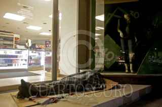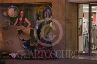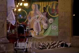 GUADALAJARA, JALISCO. 27ENERO2017.- Así es el amanecer para las personas en situación de calle, una habitación en una acera del centro de la ciudad, esto es el contraste de los cristales que divide lo mucho, de lo poco, el tener del no tener, la comodidad de la miseria, el calor de un interior al frio de las urbes y mientras la publicidad de los exitosos llena de dinero y poder a unos cuantos, la mayoría batalla en un mundo indiferente y los gobiernos no hacen nada para erradicar la pobreza. FOTO : FERNANDO CARRANZA GARCIA / CUARTOSCURO.COM