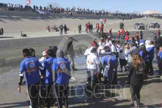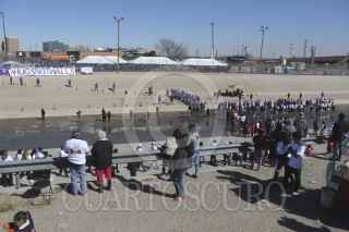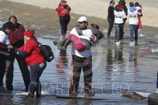 CIUDAD JUÁREZ, CHIHUAHUA, 28ENERO2017.- De nueva cuenta miles de familias separadas por la frontera entre Ciudad Juárez y El Paso, tuvieron la oportunidad de abrazarse durante tres minutos en el límite de ambas fronteras. “Abrazos y No Muros” organizado por la Red Fronteriza por los Derechos Humanos y varias organizaciones más lograron que un total de 336 familias pudieran abrazarse en medio del Río Bravo. FOTO: NACHO RUIZ /CUARTOSCURO.COM
