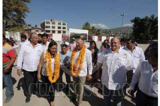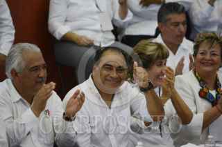 CHILPANCINGO, GUERRERO, 28ENERO2017.- José Rubén Escajeda Jiménez, en representación de Enrique Reza Ochoa, presidente nacional del PRI; tomo protesta a Heriberto Huicochea Vázquez y a Gabriela Bernal Reséndiz como nuevo presidente, y secretaria general del Comité Directo Estatal (CDE). Al evento acudió el gobernador Héctor Astudillo Flores. FOTO: JOSÉ I. HERNÁNDEZ /CUARTOSCURO.COM