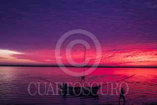 NAVOLATO, SINALOA, 30ENERO2016.- Pescador de la bahía de Altata revisa su bote después de un largo día de trabajo, de fondo, un espectacular atardecer. FOTO: RASHIDE FRIAS /CUARTOSCURO.COM
