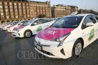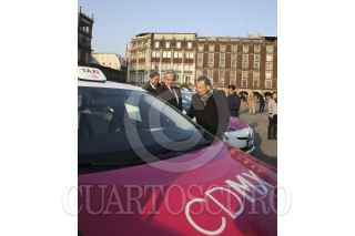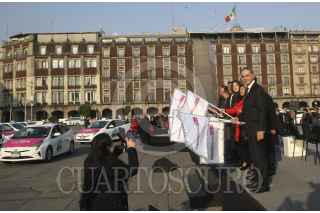 CIUDAD DE MÉXICO, 30ENERO2017.- Miguel Ángel Mancera, jefe de gobierno de la Ciudad de México, dio el banderazo a cien nuevos taxis híbridos que circularán por la capital; estas nuevas unidades cuentan con botones de pánico para seguridad de los usuarios. FOTO: ANTONIO CRUZ /CUAROSCURO.COM