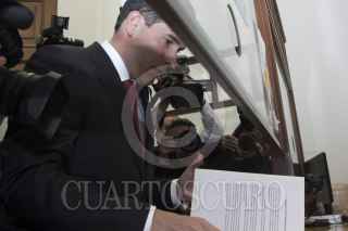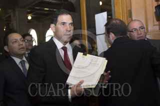 CIUDAD DE MÉXICO, 31ENERO2017.- Pablo Escudero, presidente del Senado, acudió a la Suprema Corte de Justicia de la Nación para dar entrega de una controversia constitucional en contra de los lineamientos de defensa de las audiencias del Instituto Federal de Telecomunicaciones (IFT), por considerar que podrían ir en contra de la libertad de expresión. FOTO: GALO CAÑAS /CUARTOSCURO.COM