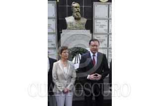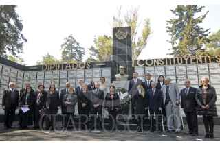 CIUDAD DE MÉXICO, 31ENERO2017.- María Cristina García Cepeda, Secretaria de Cultura y Miguel Ángel Osorio Chong, Secretario de Gobernación, encabezaron la Guardia de Honor y Depósito de la Ofrenda en el Lote Fúnebre de los Diputados Constituyentes de 1917 en el Panteón Civil de Dolores. FOTO: SECRETARÍA DE CULTURA /CUARTOSCURO.COM