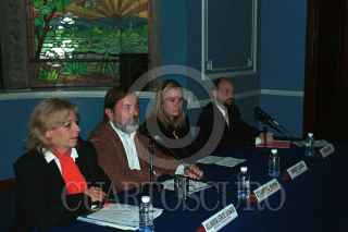Alejandra León de la Barra, Epigmenio Ibarra, Sandy Clark y Emilio Díaz en confrerencia de prensa anunciaron que Argos Comunicación , será anfitrión de las semifinales de los premios EMMY Internacionales 2003. FOTO: Ricardo Hernández/CUARTOSCURO.COM