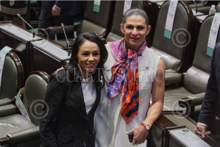 CIUDAD DE MÉXICO, 01FEBRERO2017.- La diputada Jackie Nava y la senadora Ana Gabriela Guevara, al término de la Sesión de Congreso General para la apertura del Segundo Periodo de Sesiones Ordinarias del Segundo Año de Ejercicio de la LXIII Legislatura, en San Lázaro. FOTO: ISAAC ESQUIVEL /CUARTOSCURO.COM