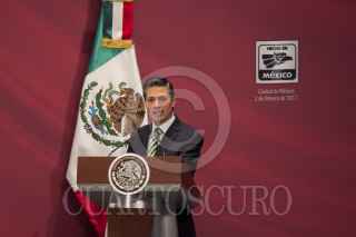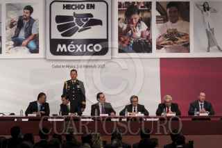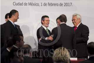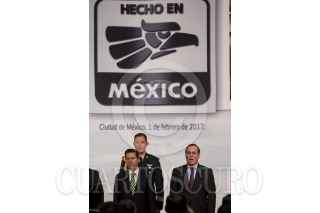 CIUDAD DE MÉXICO, 01FEBRERO2017.- Manuel Herrera Vega, presidente de la Confederación de Cámaras Industriales de los Estados Unidos Mexicanos (CONCAMIN); Enrique Peña Nieto, presidente de la República; Juan Pablo Castañón, presidente del Consejo Coordinador Empresarial, e Ildefonso Guajardo, secretario de Economía, y José Ascención Orihuela, presidente de la comisión de Fomento Económico en la Cámara de Senadores, al término de la presentación de la iniciativa “Lo Hecho en México”, en el hotel Hilton de avenida Juárez. La nueva medida busca integrar y fortalecer a los productores nacionales. FOTO: GALO CAÑAS /CUARTOSCURO.COM