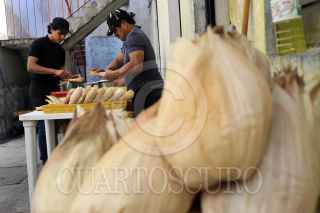PUEBLA, PUEBLA, 02FEBRERO2017.- Una familia labora desde temprana hora del día de hoy en la elaboración de los tradicionales tamales para el festejo del día de la Candelaria. FOTO: HILDA RÍOS /CUARTOSCURO.COM