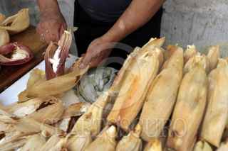 PUEBLA, PUEBLA, 02FEBRERO2017.- Una familia labora desde temprana hora del día de hoy en la elaboración de los tradicionales tamales para el festejo del día de la Candelaria. FOTO: HILDA RÍOS /CUARTOSCURO.COM
