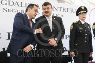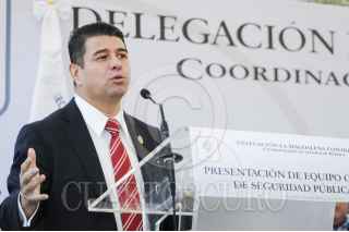 CIUDAD DE MÉXICO, 02FEBRERO2017.- Fernando Mercado Guaida, delegado en la Magdalena Contreras e Hiram Almeida Estrada, Secretario de Seguridad Pública, encabezaron la presentación del nuevo equipo operativo de Seguridad Pública para la demarcación. Durante el evento se realizó el banderazo de salida a los nuevos vehículos y la presentación de los nuevos integrantes policiácos. FOTO: DIEGO SIMÓN SÁNCHEZ /CUARTOSCURO.COM