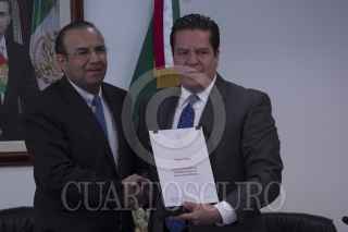 CIUDAD DE MÉXICO, 02FEBRERO2017.- Alfonso Navarrete Prida, secretario de Trabajo y Previsión Social, realizó la toma y entrega de nota de la Asociación Sindical de Sobrecargos de Aviación (ASSA) a Ricardo del Valle Solares, secretario general de ASSA México. FOTO: GALO CAÑAS /CUARTOSCURO.COM