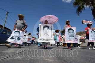 CHILPANCINGO, GUERRERO, 02FEBRERO2017.- Padres de los 43 estudiantes de Ayotzinapa desaparecidos en Iguala, marcharon para conmemorar el aniversario luctuoso del profesor Genaro Vázquez Rojas y para exigir la libertad de policías comunitarios de la Coordinadora Regional de Autoridades Comunitarias (CRAC). FOTO: JOSÉ I. HERNÁNDEZ / CUARTOSCURO.COM