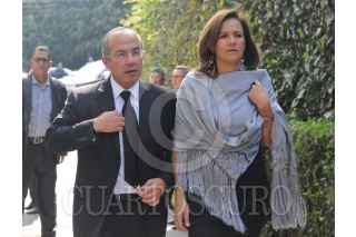 CIUDAD DE MÉXICO, 03FEBRERO2017.- Felipe Calderón Hinojosa, ex presidente de México, y su esposa Margarita Zavala, acudió al funeral del empresario Lorenzo Servitje, fundador de Bimbo, quien murió la madrugada de este día en su casa ubicada en Lomas de Chapultepec. FOTO: DIEGO SIMÓN SÁNCHEZ /CUARTOSCURO.COM