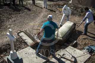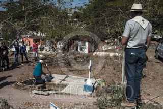 QUELÍTE, SINALOA, 04FEBRERO2017.- En el panteón Ubicado en el poblado El Quelíte autoridades y una comitiva de la tercera Brigada Nacional de Búsqueda de desaparecidos realizaron la exhumación de un cuerpo que fue enterrado en el 2014 supuestamente identificado en su momento como Ernesto Manjarrez Garcia quien meses después apareció en Estados Unidos, peritos realizan las pruebas de ADN para encontrar la verdadera identidad de la víctima. FOTO: RASHIDE FRIAS /CUARTOSCURO.COM