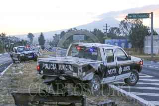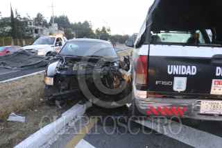 TLAXCALA, TLAXCALA, 04FEBRERO2017.- Un conductor que circulaba bajo los efectos del alcohol y a exceso de velocidad en la autopista Texmelucan-Tlaxcala, embistió a tres autos, entre ellos dos patrullas que abanderaban un accidente. FOTO: JORGE LEZAMA /CUARTOSCURO.COM