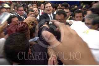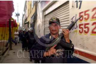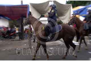 Elementos de la policia montada escoltaron al secretario de Seguridad Pública, Marcelo Ebrard, durante el recorrido en las calles de Tepito. FOTO: Juan Pablo Zamora/CUARTOSCURO.COM