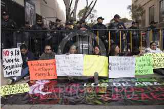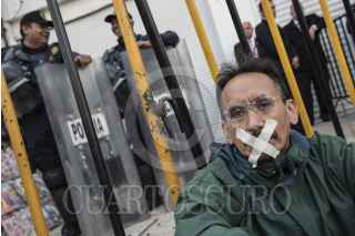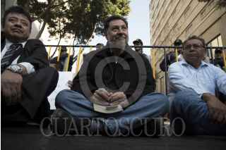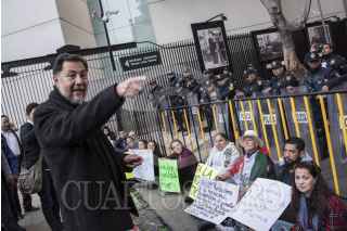 CIUDAD DE MÉXICO, 07FEBRERO2017.- Alrededor de 40 personas acudieron al llamado de Gerardo Fernández Noroña, ex miembro del Partido de la Revolución Democrática, para bloquear el acceso al Senado de la República con el propósito de evitar que los senadores legislen sobre la nueva Ley de Seguridad Interior, la cual normaliza la intervención de las fuerzas militares en las calles y da pie a la intervención de medios de comunicación con el fin de recolectar datos de la ciudadanía en caso de considerarse necesario. FOTO: TERCERO DÍAZ /CUARTOSCURO.COM