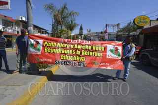 CHILPANCINGO, GUERRERO, 07FEBRERO2017.- Trabajadores del Colegio de Estudios Científicos y Tecnológicos de Guerrero (CECyTE), desalojaron a personal de sus oficinas y bloquearon la avenida Lázaro Cárdenas, con el propósito de exigir la renuncia de Jaime Carmona y Santos Pacheco, Director General y Coordinador Académico de la escuela, respectivamente, acusados de violentar los derechos laborales. FOTO: JOSÉ I. HERNÁNDEZ /CUARTOSCURO.COM