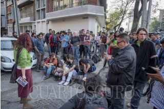 CIUDAD DE MÉXICO, 07FEBRERO2017.- Integrantes del espacio autónomo Chanti Ollin que fueron desalojados el pasado 22 de noviembre del edificio que mantenian ocupado, realizaron una concentración el día de hoy para exigir la libertad de un compañero que continua preso, y para denunciar la arbitrariedad con la que fueron desalojados del predio y la persecusión política de la que varios miembros son víctimas, ya que se han abierto nuevas órdenes de aprensión en contra de ellos. FOTO: TERCERO DÍAZ /CUARTOSCURO.COM