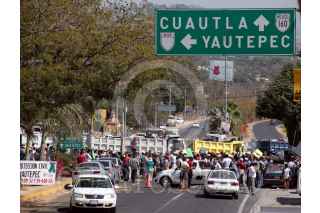 YAUTEPEC, MORELOS, 09FEBRERO2017.- Encabezados por Agustín Alonso, alcalde de este municipio, decenas de vecinos bloquearon la carretera federal Cuernavaca-Cuautla para exigir que Eduardo Ocampo jefe del Mando Único sea removido luego de que detuviera a dos elementos de la policía de proximidad acusándolos de duplicidad de funciones. Hasta el bloqueo llego el Secretario de Gobierno de Morelos Matías Quiroz Medina, quien, luego de negociar con el alcalde y cabildo acordó liberar a los detenidos y cambiar al jefe policiaco. FOTO: MARGARITO PÉREZ RETANA /CUARTOSCURO.COM