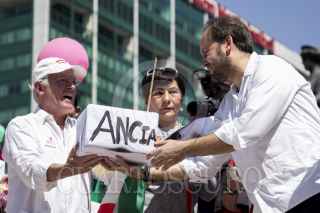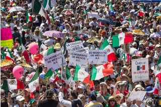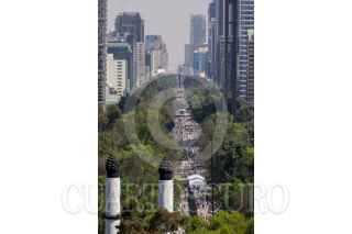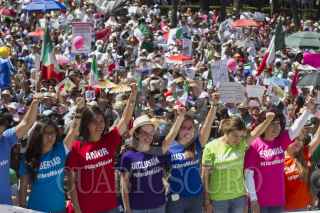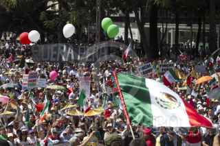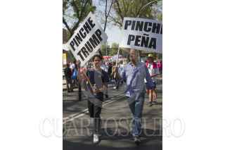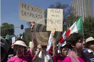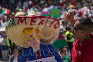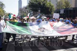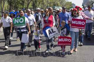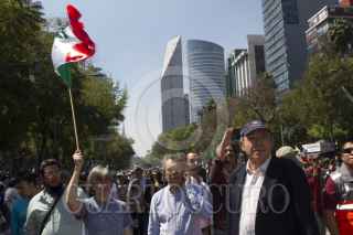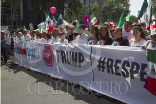 CIUDAD DE MÉXICO, 12FEBRERO2017.- Miles de personas se manifestaron en la marcha "Vibra México" que partió del Auditorio Nacional al Ángel de la Independencia, los participantes rechazaron las políticas antimigrantes del presidente norteamericano Donald Trump y su dichos xenófobos contras los connacionales que viven en la nación de las barras y las estrellas. Al llegar a la glorieta cantaron el himno nacional. También se observaron expresiones por las políticas económicas y de relaciones exteriores del presidente mexicano Enrique Peña Nieto. FOTO: MOISÉS PABLO /CUARTOSCURO.COM